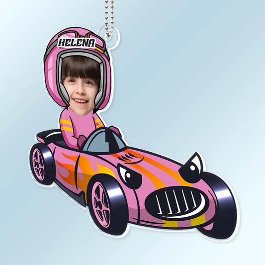 Pilote de course bébé – Ornement photo en acrylique