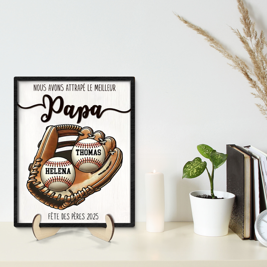 Attrapé... - Plaque en bois personnalisée avec des balles de baseball