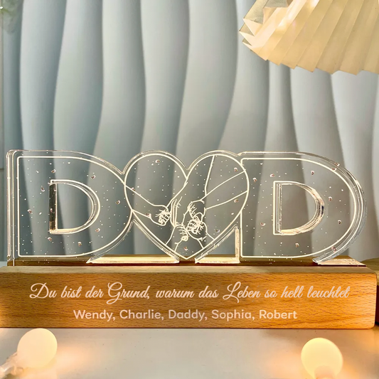 Veilleuse personnalisée "DAD" avec motif main dans la main – Cadeau pour papa