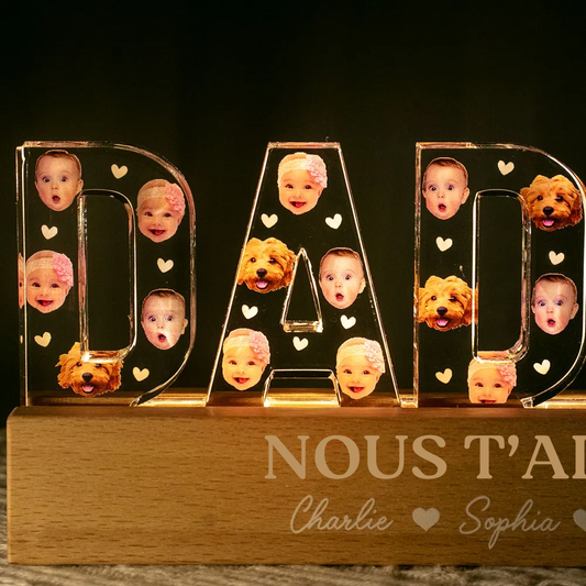 Veilleuse LED personnalisée DADDY avec visages – Cadeau pour papa