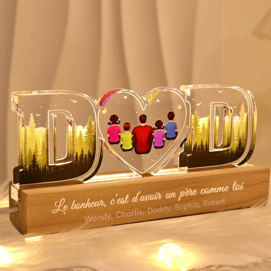 Veilleuse personnalisée "DAD" – Père avec 1 à 6 personnes, cadeau pour papa
