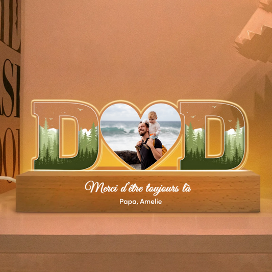 Veilleuse LED personnalisée DAD avec photo, citations et prénoms – Cadeau pour papa