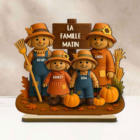 Épouvantails et citrouilles – Plaque en bois personnalisée pour la famille