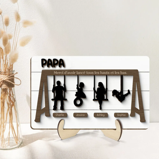 La famille sur la balançoire - Plaque en bois personnalisée pour père et mère