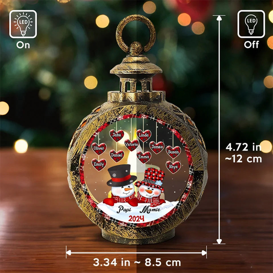 Ornements de lanterne photophore avec famille de bonhommes de neige - Cadeau pour parents et grands-parents