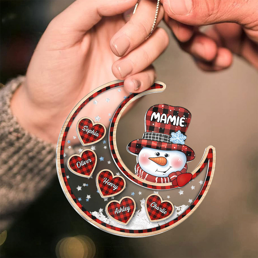 Personnalisé bonhomme de neige sur la lune - Ornement shaker, cadeau de Noël pour Mamie & Maman