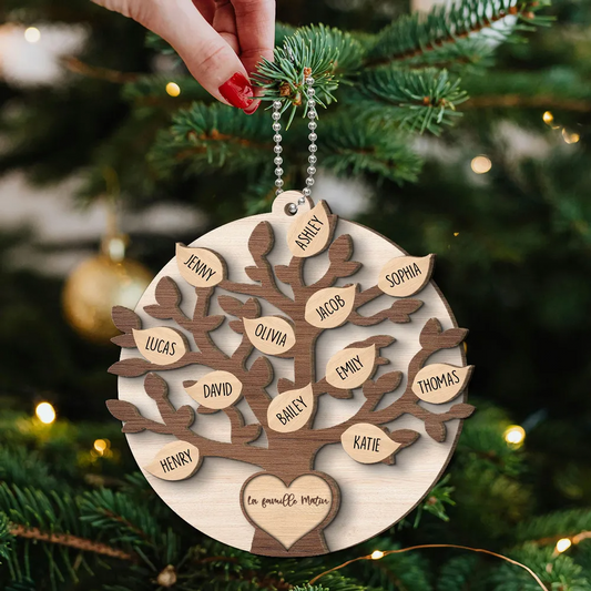 Ornement de Noël en bois - Décoration de sapin en forme d'arbre généalogique familial