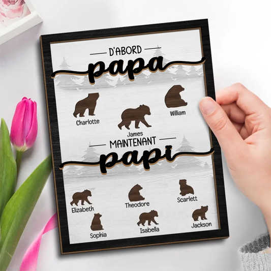 D'abord Papa, Maintenant Papi - Plaque en bois personnalisée avec motif animalier