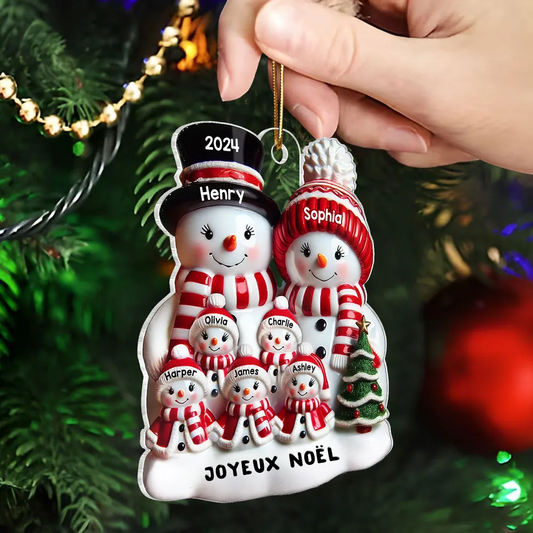 Famille Bonhomme de neige effet brillant Décoration de Noël - Pendentif personnalisé en acrylique