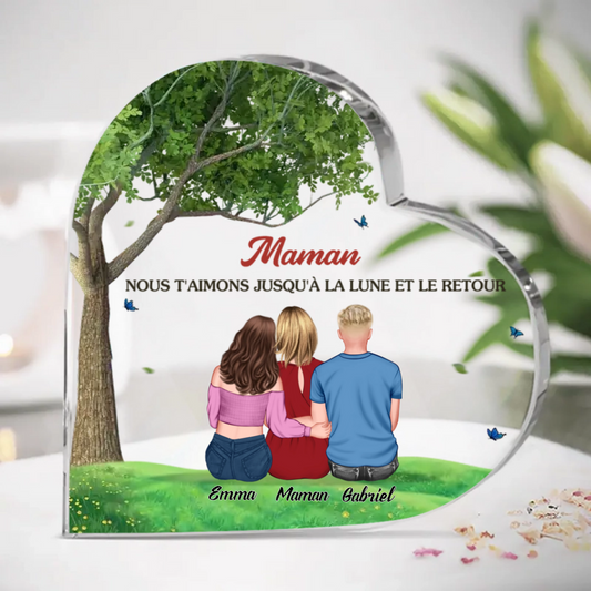 Coeur en acrylique avec arbre généalogique, de 1 à 10 noms, pour maman et mamie.