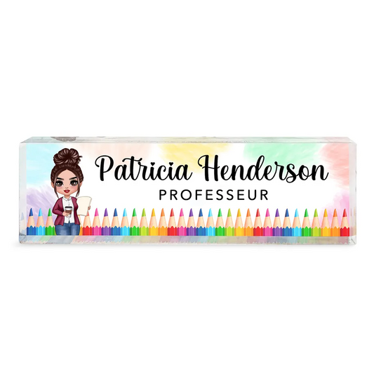 Plaque de bureau personnalisée pour enseignant – Motif crayon