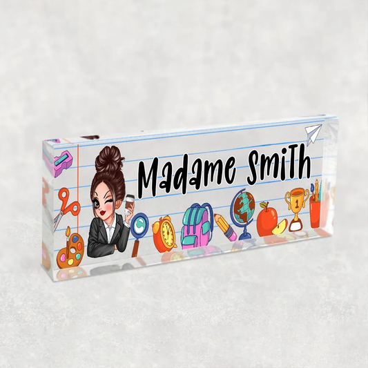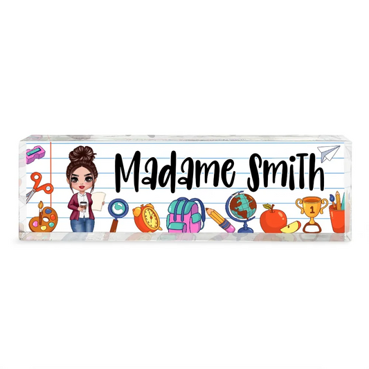 Plaque de bureau en acrylique personnalisée – Motifs scolaires pour enseignantes