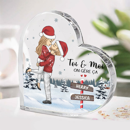 Cadeau de Noël personnalisé pour un couple amoureux – Souvenir en forme de cœur sur pied