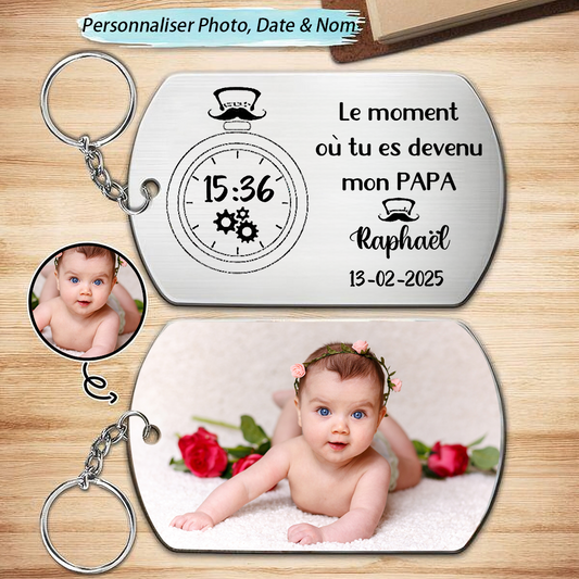 Porte-clés en acier inoxydable avec photo – Cadeau pour la fête des pères