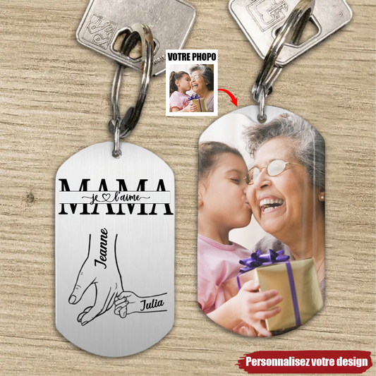 Porte-clés en acier inoxydable avec photo pour maman, papa, mamie et papi