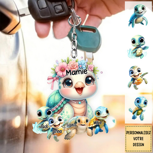 Adorable tortue - Porte-clés en acrylique personnalisé pour mamie et maman
