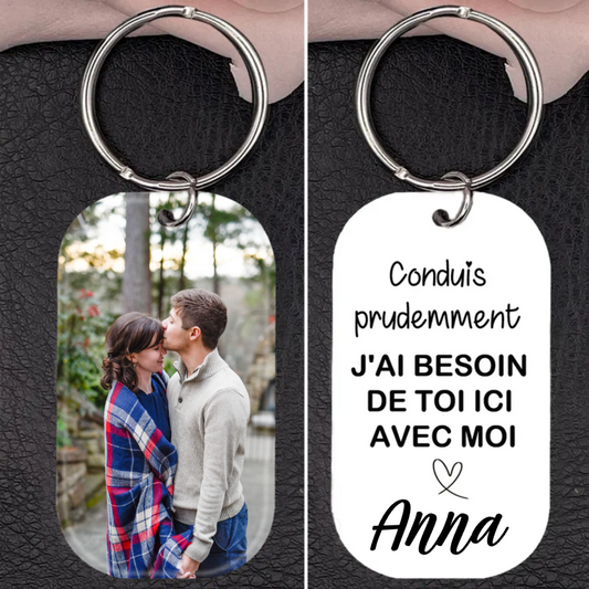 Porte-clés en Acier Inoxydable pour Couple – Porte-clés Personnalisé "Conduis Prudemment"