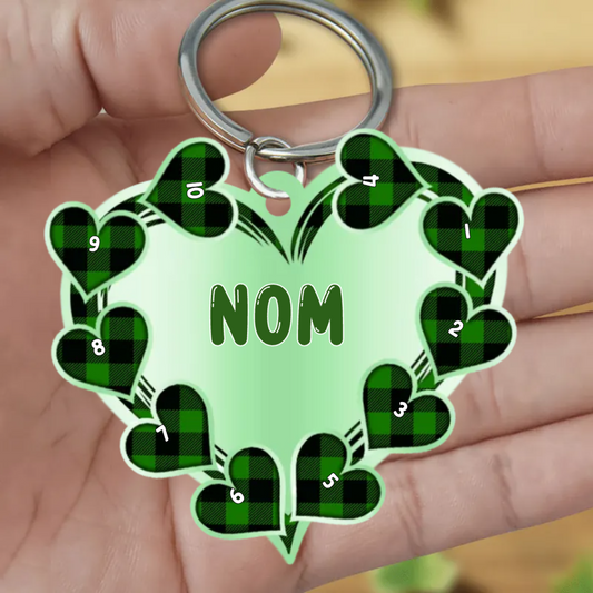Porte-clés en acrylique avec des cœurs et de 1 à 10 noms