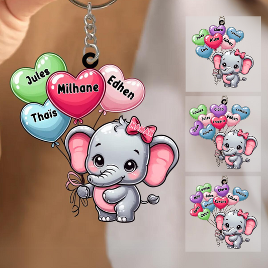 Éléphant et ballons - Porte-clés personnalisé en acrylique