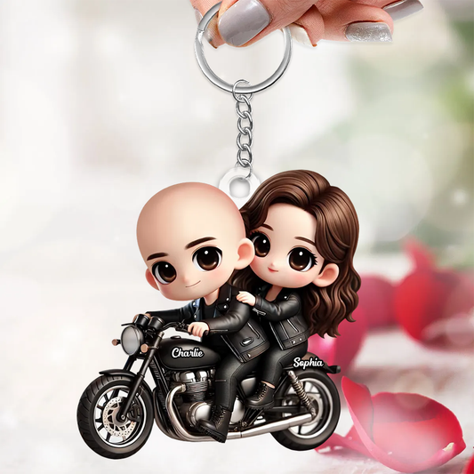 Couple sur moto – Porte-clés en acrylique personnalisé, cadeau pour couple
