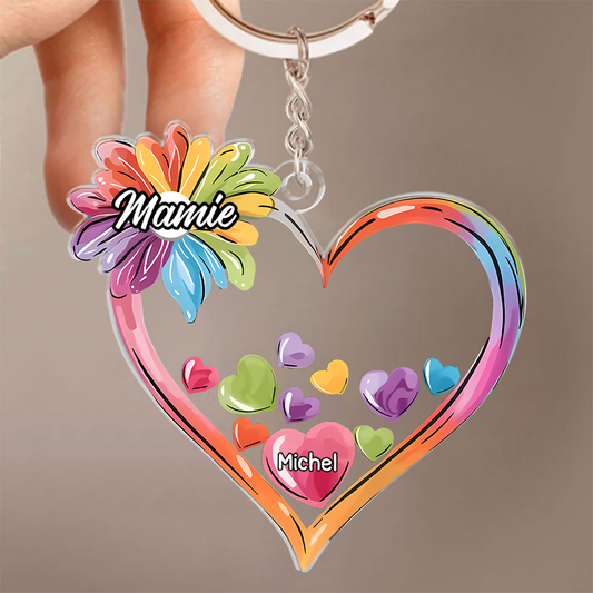 Cœurs colorés – Porte-clés personnalisé en acrylique pour Mamie et Maman