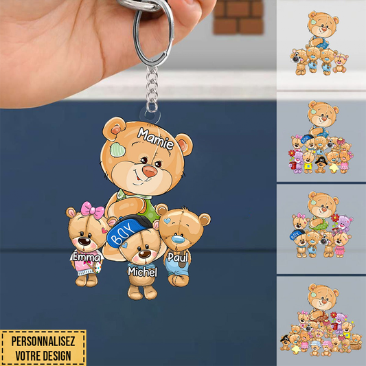 Porte-clés en acrylique "Famille d'abeilles" avec impression des deux côtés pour maman et mamie