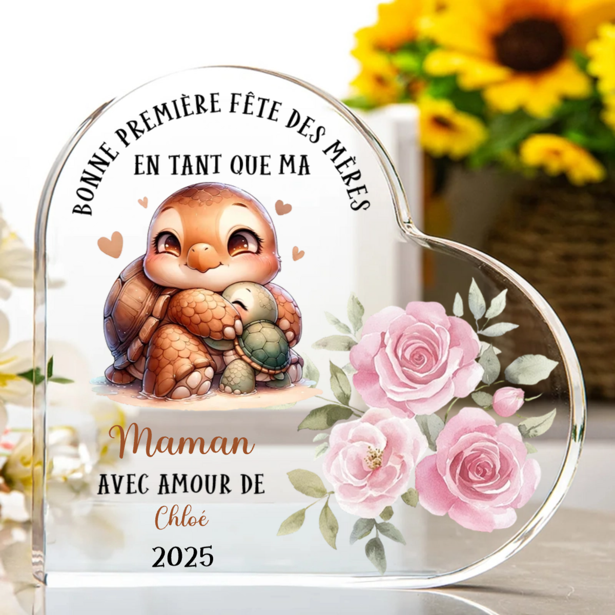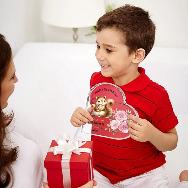 Cœur en acrylique personnalisé avec motif animal – Cadeau pour la Fête des Mères