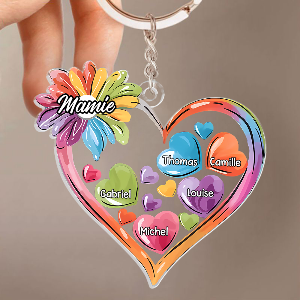 Cœurs colorés – Porte-clés personnalisé en acrylique pour Mamie et Maman