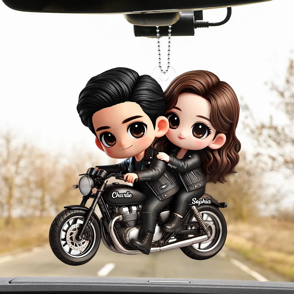 Couple sur moto – Pendentif en acrylique personnalisé, cadeau pour couple