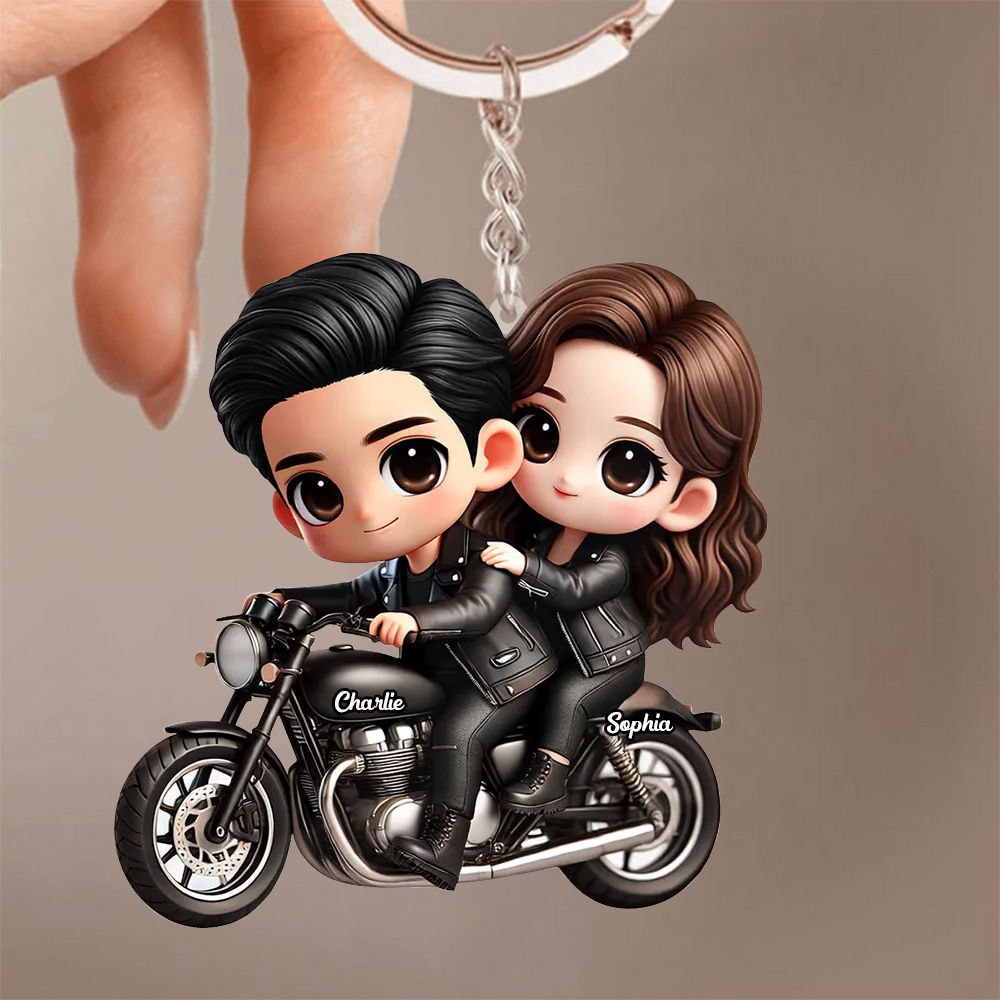 Couple sur moto – Porte-clés en acrylique personnalisé, cadeau pour couple