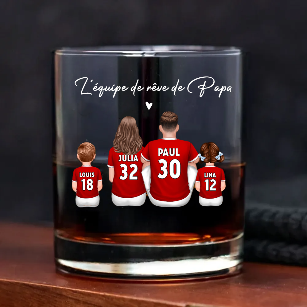 L’équipe de foot de Papa – Verre à whisky personnalisé avec 2 à 5 personnages, cadeau pour papa
