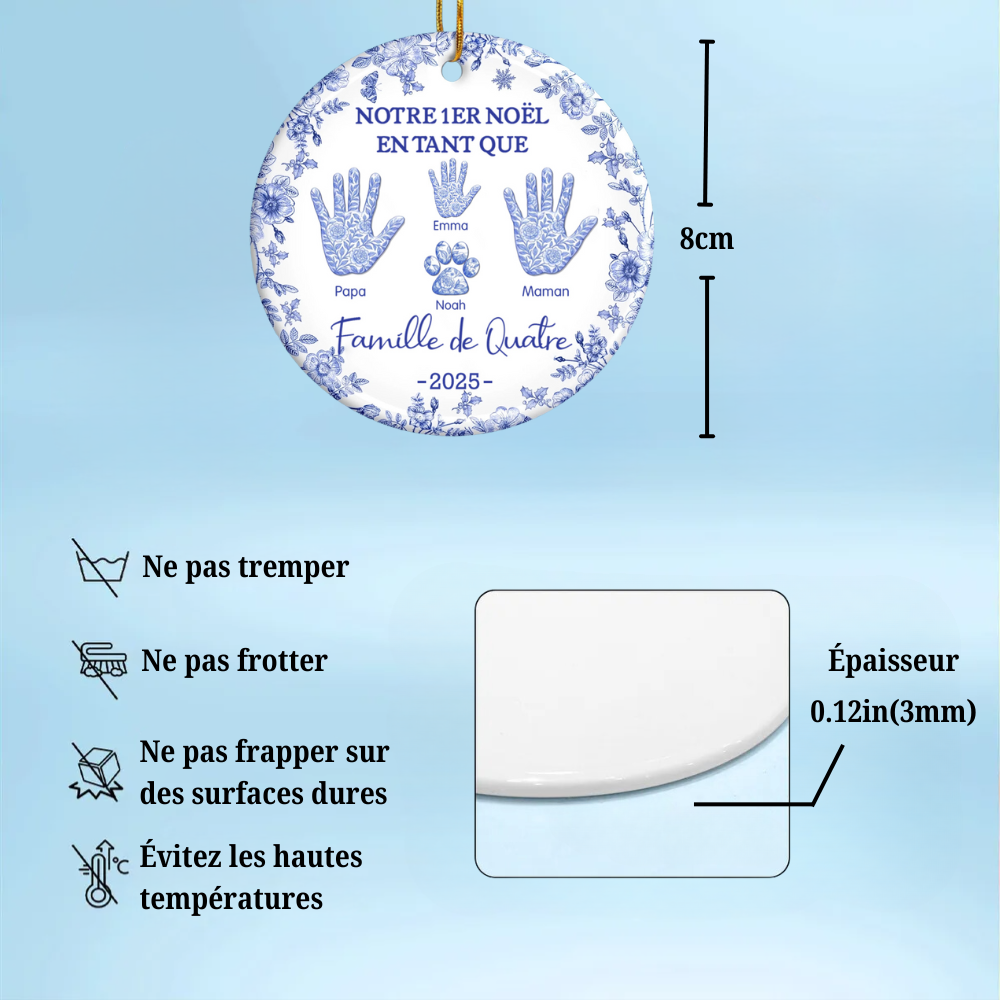 Notre premier Noël en famille... Décoration pour sapin de Noël avec empreinte de main et nom