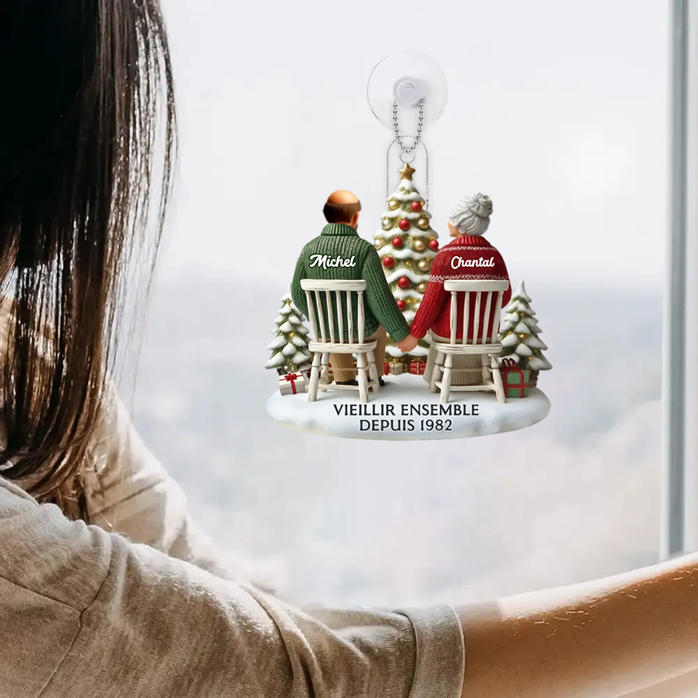 Ornement de Noël plate en acrylique – « Vieux couple »