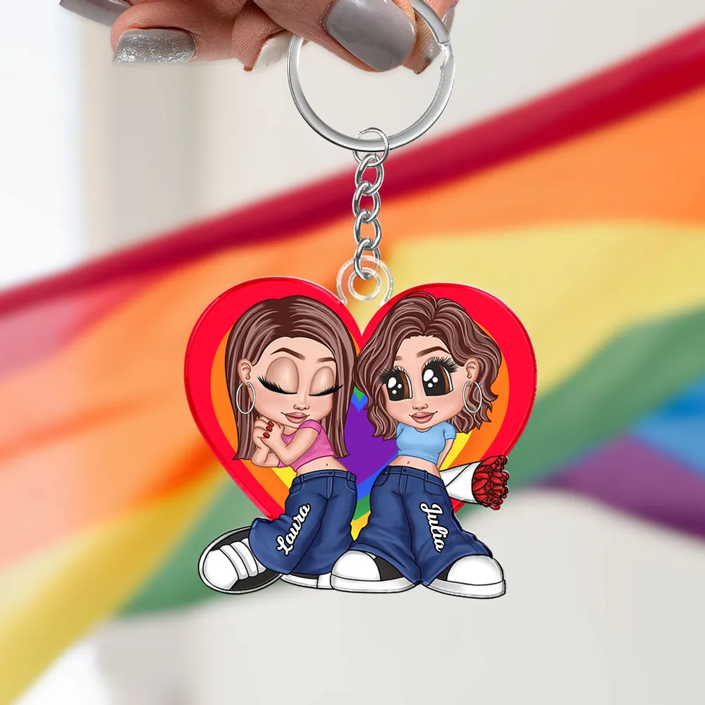 Porte-clés acrylique personnalisé cœur arc-en-ciel – Cadeau pour couple LGBT