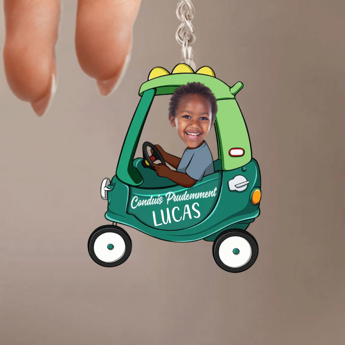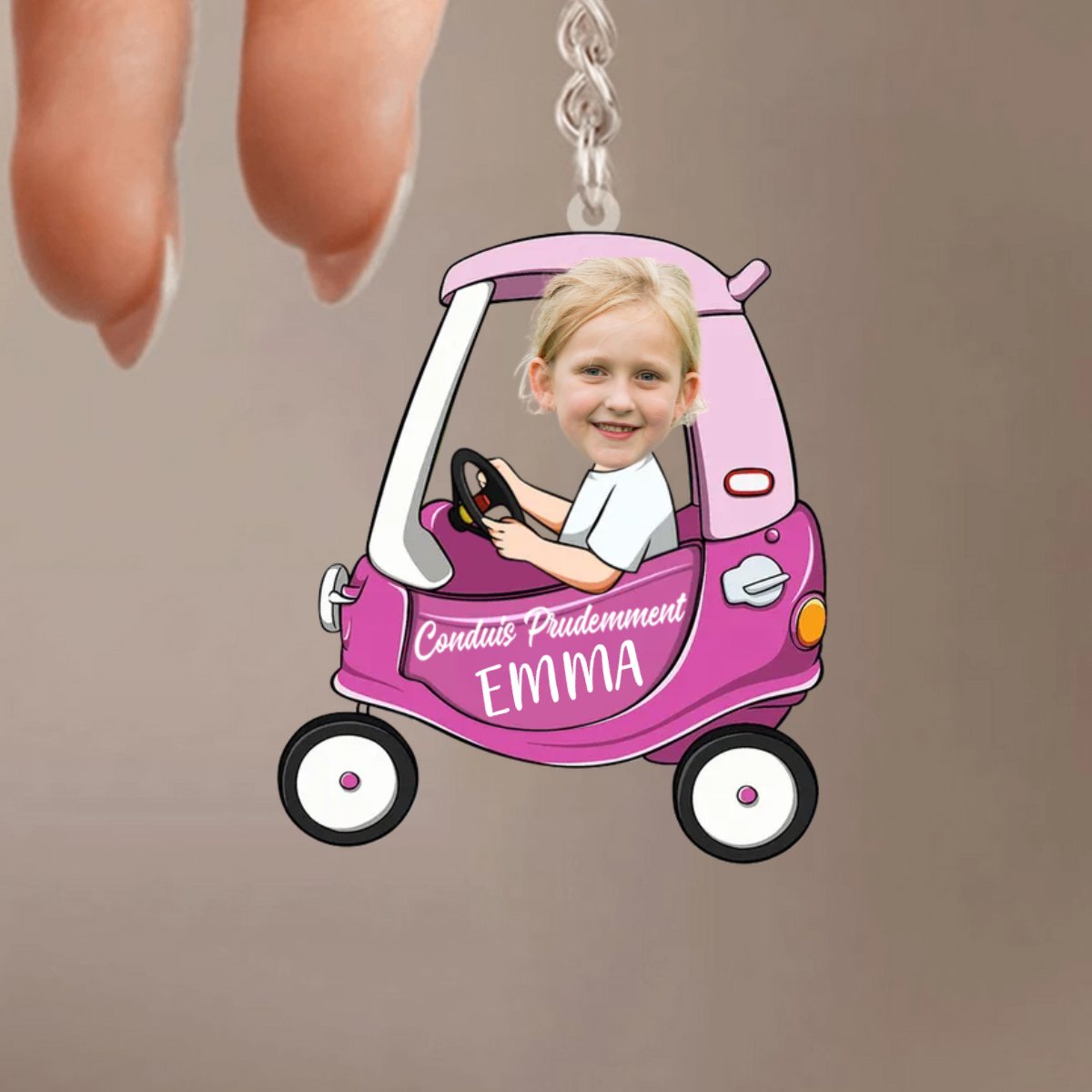 Porte-clés « Conduis prudemment » avec photo et prénom personnalisé