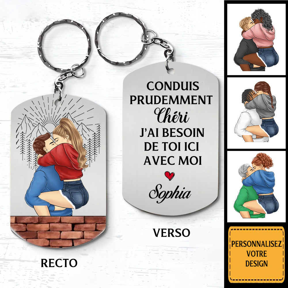 Porte-clés en Acier Inoxydable pour Couple – Porte-clés Personnalisé "Conduis Prudemment"