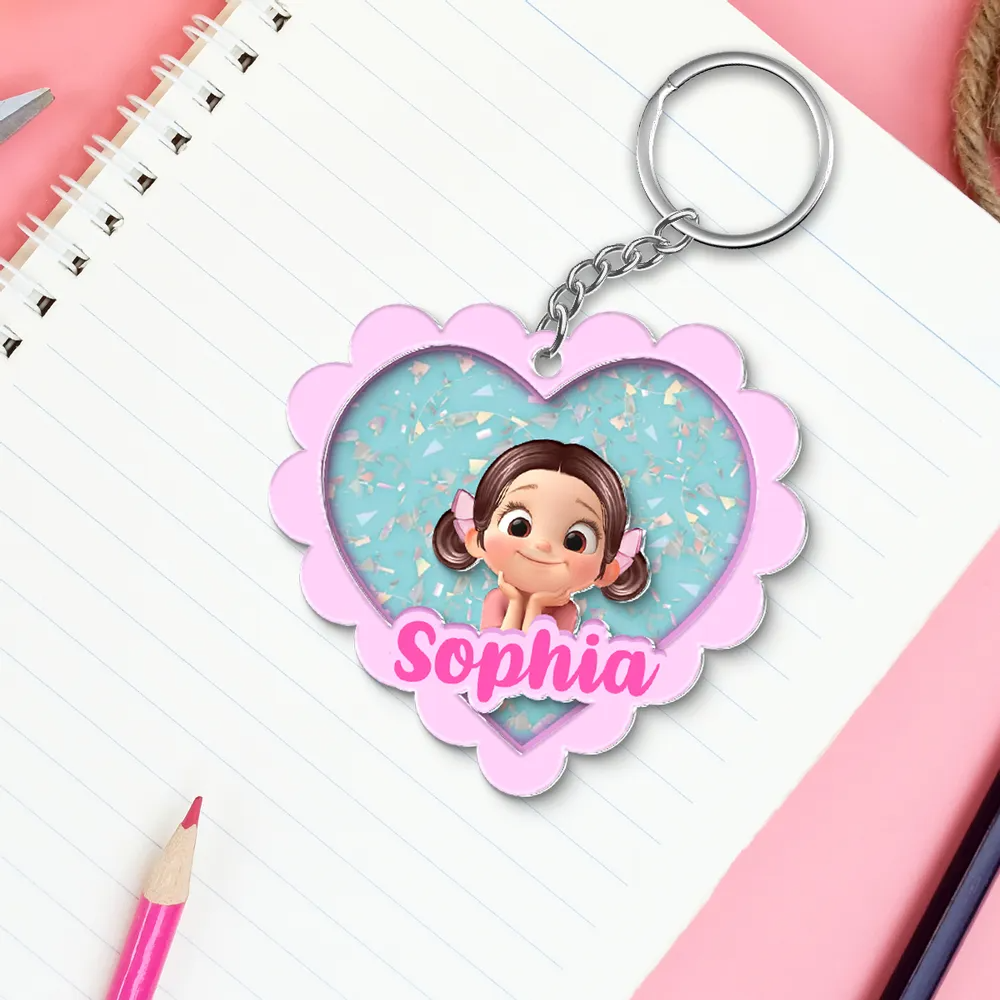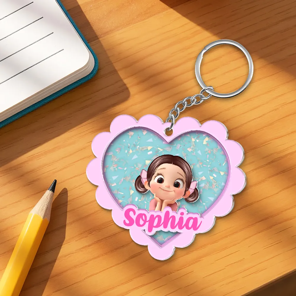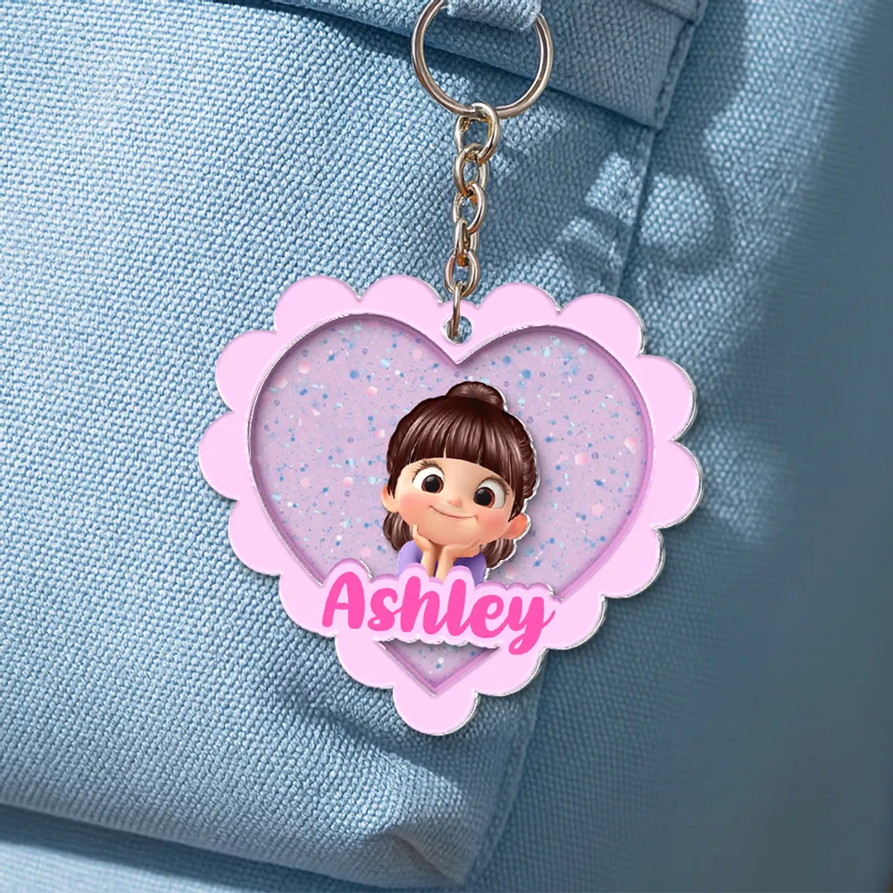 Porte-clés en acrylique avec cœur et nom – Cadeau pour enfants