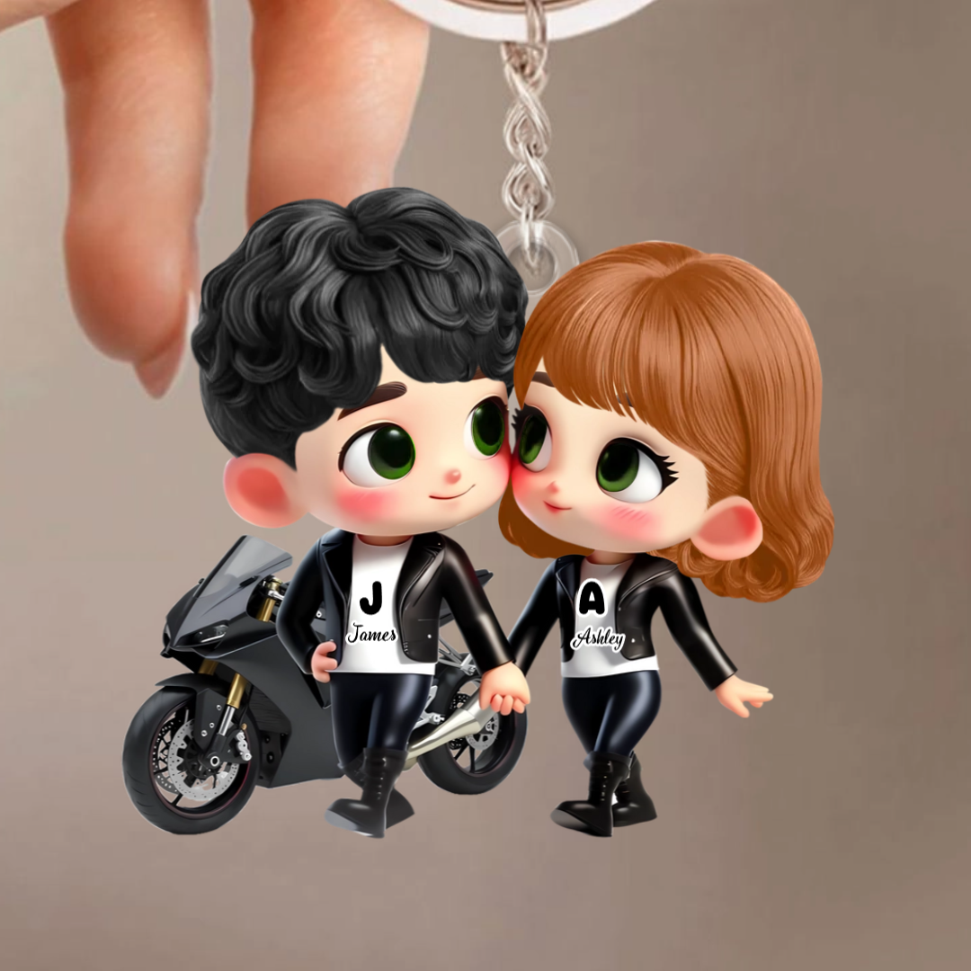 Porte-clés en acrylique Couple à moto – Cadeau pour couple