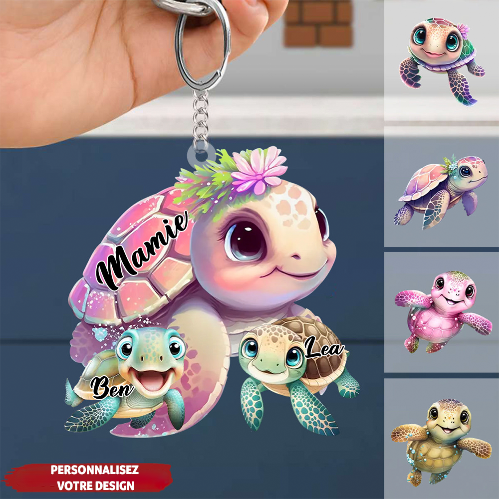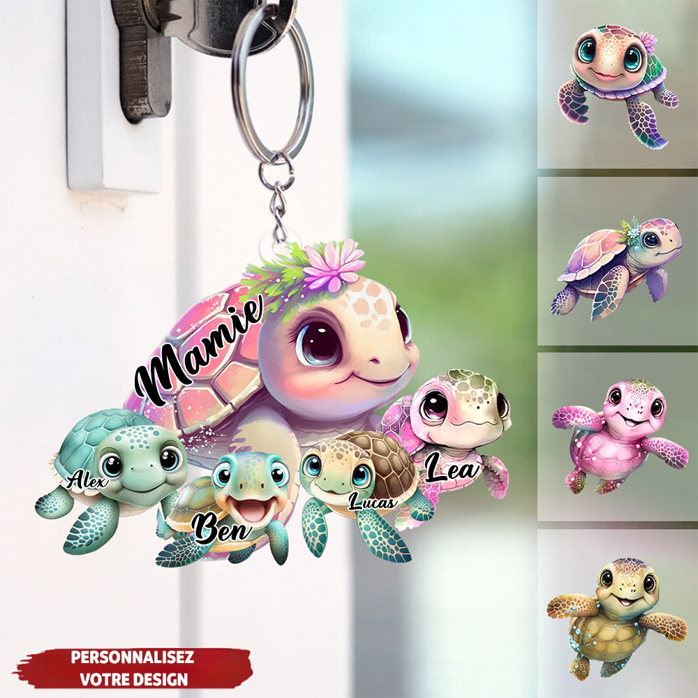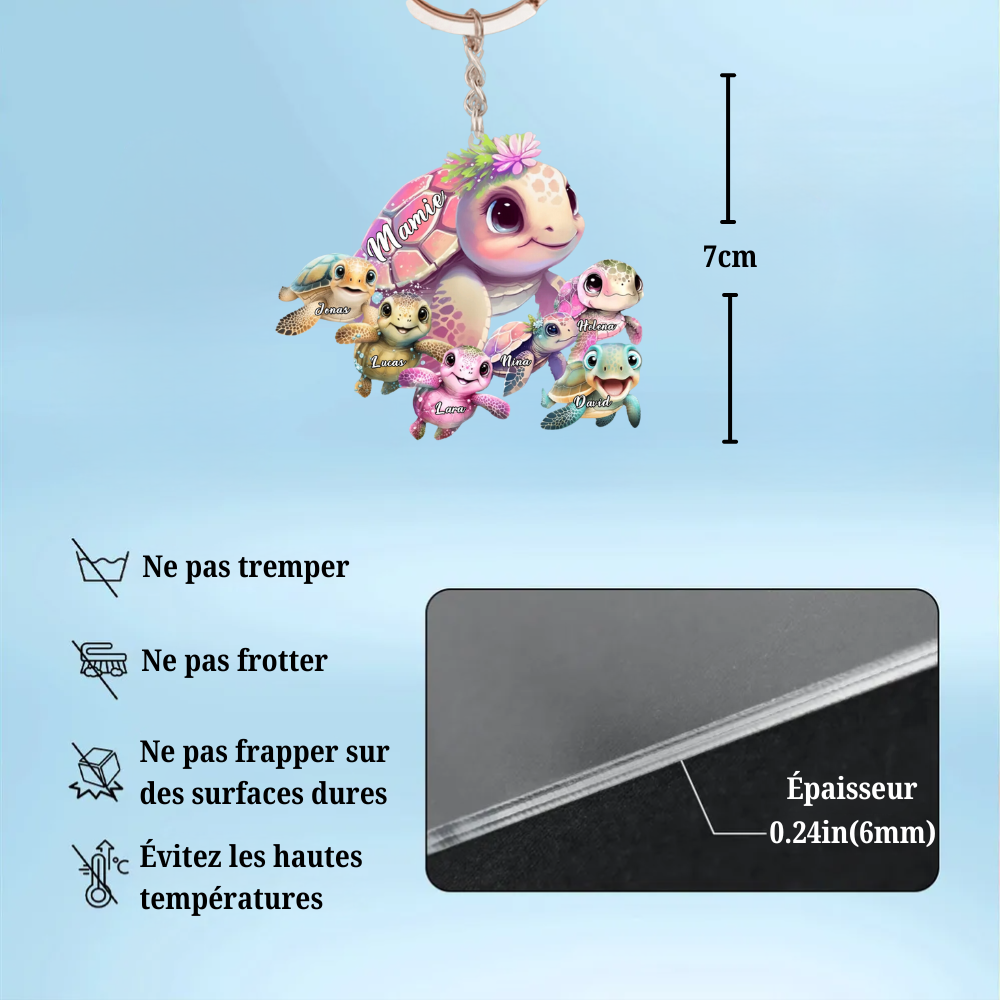 Porte-clés en acrylique Maman Tortue et ses petites Tortues pour Maman et Mamie