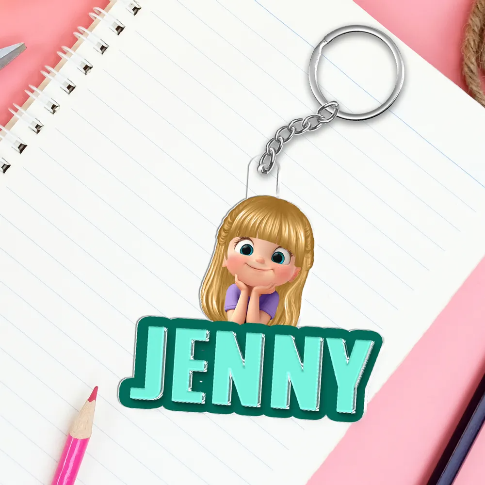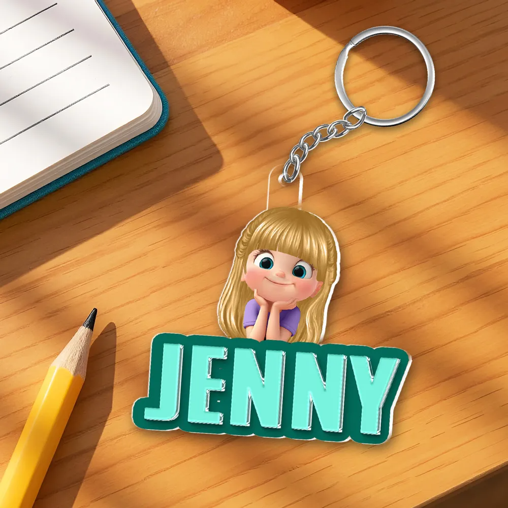 Porte-clés en acrylique personnalisé avec enfant et prénom – Cadeau pour enfants et maman