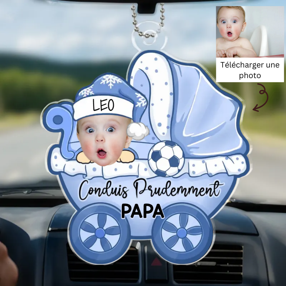- Personnalisé : avec photo, nom du destinataire et nom de l'enfant gravés.