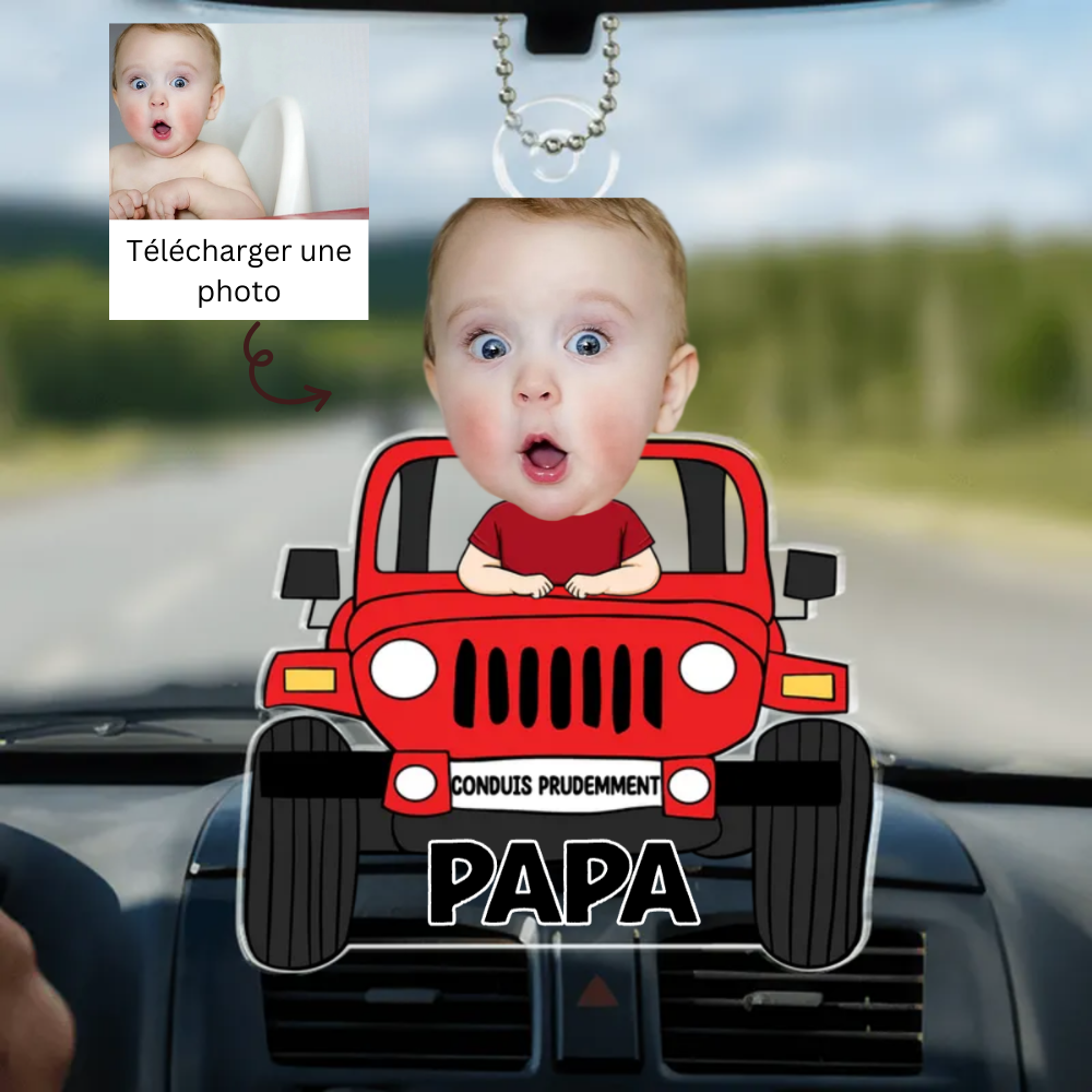 - Personnalisé : avec photo, nom du destinataire et nom de l'enfant gravés.
